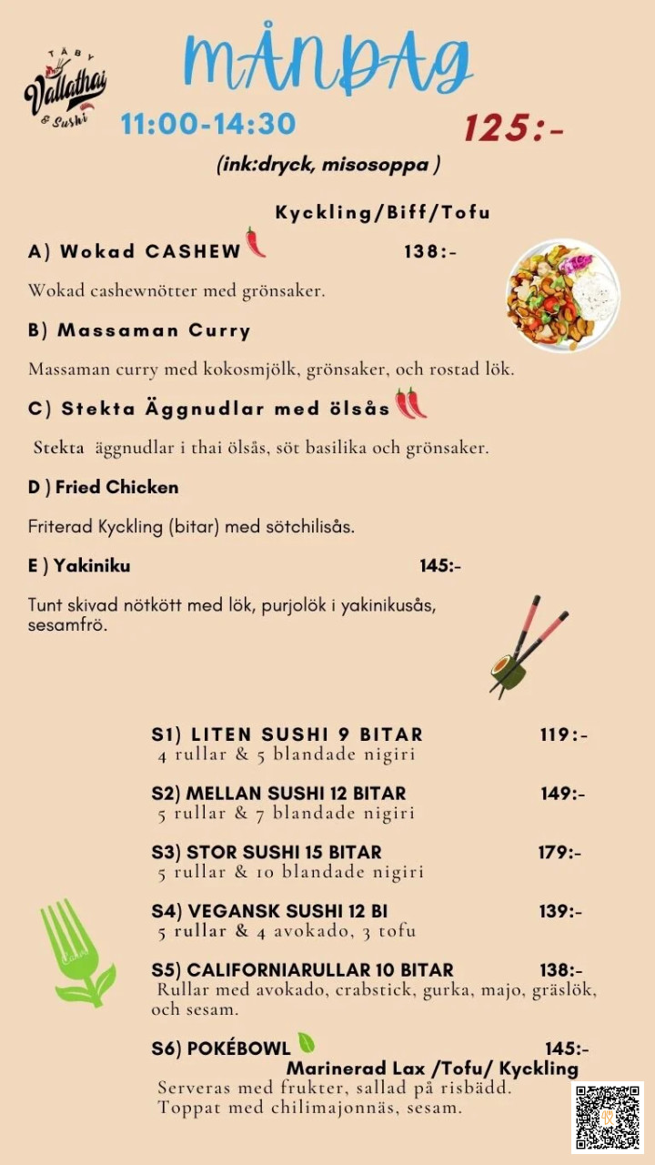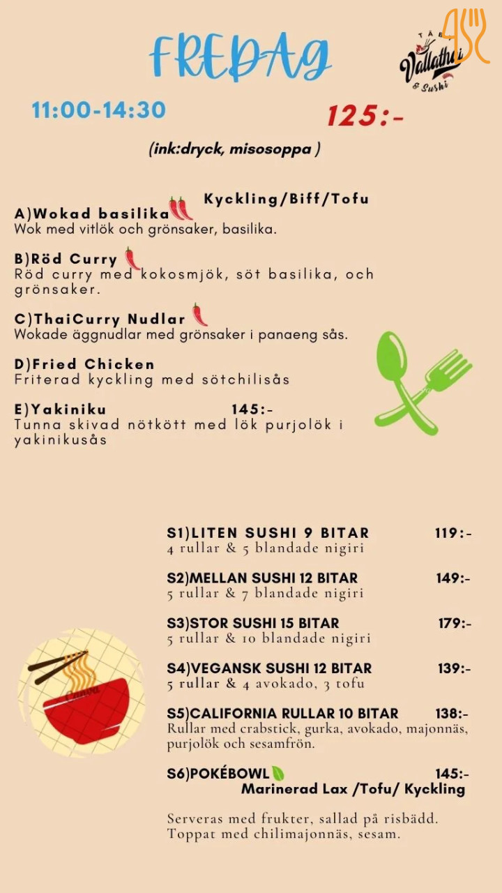 Thairestaurang, Sushi-ställe, Thailändsk